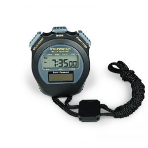 • Clear display for stopwatch, time and weekdays